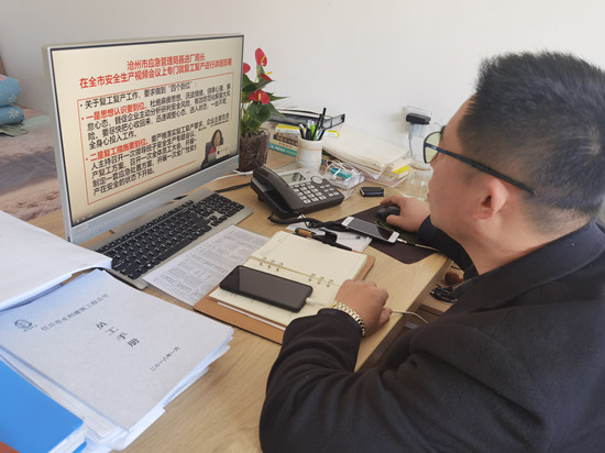 2月20日,質(zhì)量安全處組織全體施工人員通過手機(jī)、電腦等移動(dòng)終端,觀看由滄州市應(yīng)急管理局主辦的 “開工第一課”線上直播課,以《開好局起好步為全年安全生產(chǎn)打基礎(chǔ)》為題,強(qiáng)化安全意識,筑牢思想防線。