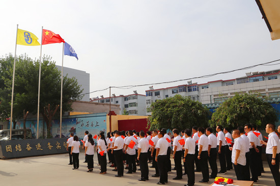 奮斗百年路,開啟新征程。上午8時(shí),公司三名退伍軍人充當(dāng)護(hù)旗手邁著鏗鏹有力的步伐走向升旗臺(tái),在雄壯嘹亮的國歌聲中,鮮艷的五星紅旗冉冉升起。全體員工列隊(duì)整齊,精神飽滿,用深情的注目禮表達(dá)對(duì)黨、對(duì)祖國的無限忠誠和熱愛。